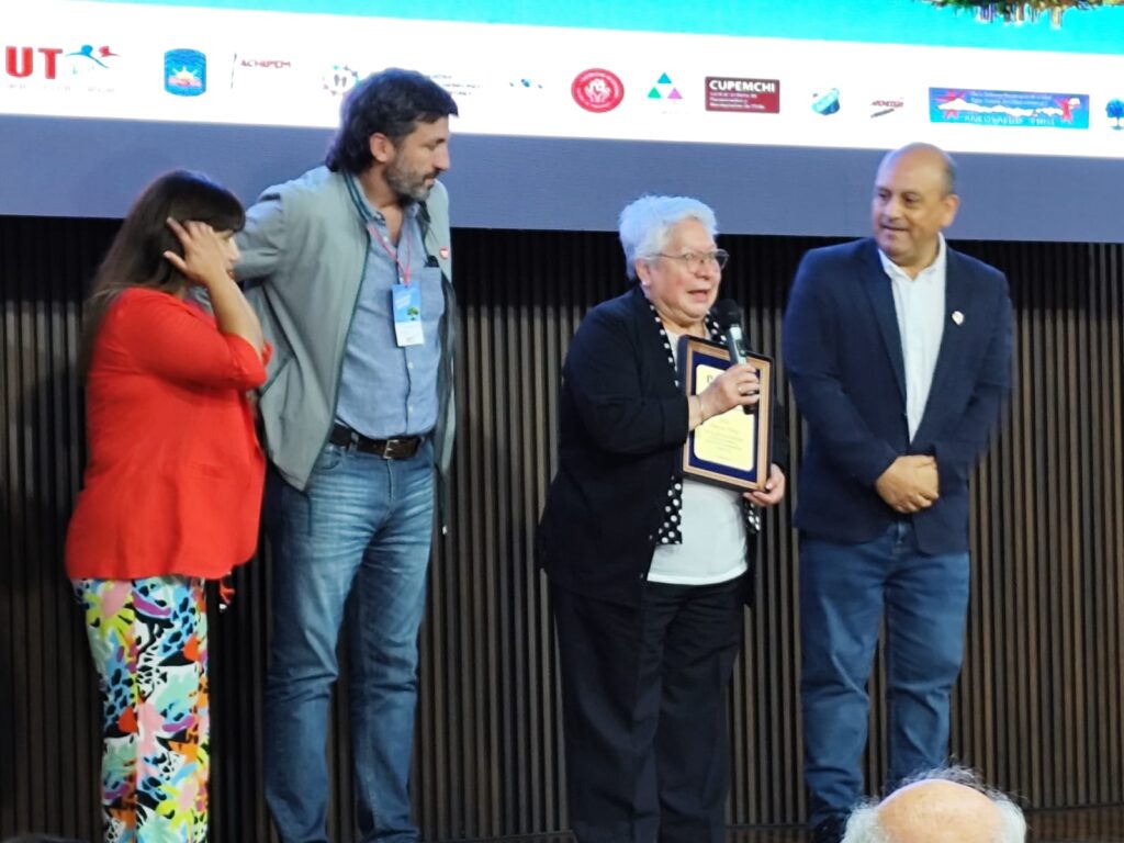 Durante la jornada, se realizó un emotivo reconocimiento a la profesora Julia Burgos, quien recibió una distinción en representación de las y los profesores jubilados, destacando su trayectoria gremial y su compromiso con la defensa de los derechos de las y los docentes retirados.