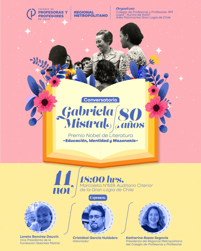 La instancia buscará abrir un espacio de reflexión sobre el legado de Gabriela Mistral, su visión de la educación pública y su vínculo histórico con la masonería, abordando también su impacto en la construcción de identidad y ciudadanía.