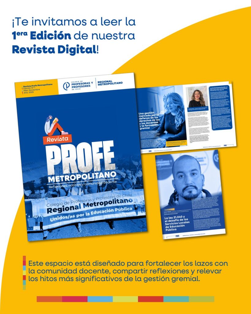 El Regional Metropolitano del Colegio de Profesoras y Profesores anunció la publicación de la primera edición de su revista “Profe Metropolitano”, un nuevo espacio editorial dedicado al análisis, la opinión y la reflexión en torno al quehacer gremial y educativo. La revista ya se encuentra disponible en formato digital, mientras que su versión impresa estará […]